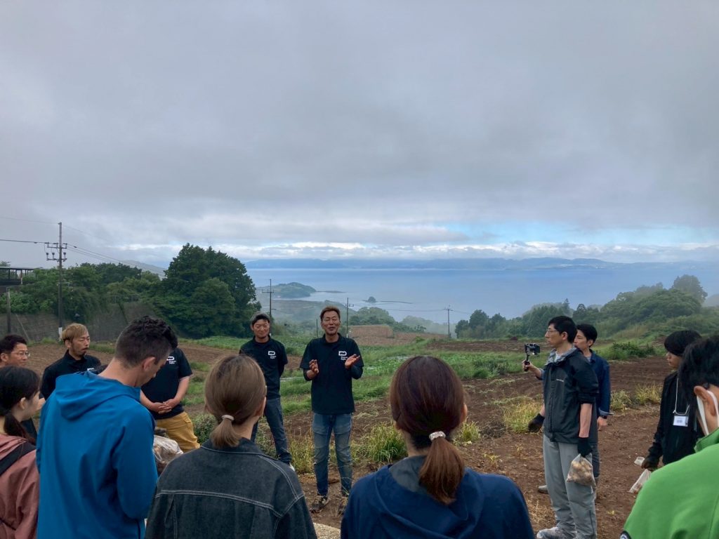 一方、1次産業体験班は、南串山町にある株式会社天洋丸さんで地元で行われるイワシ漁について聞き、煮干し生産の現場を視察。その後、同町内のじゃがいも生産者であるデジマプロジェクトさんの畑でお話を聞きながら、希少な品種のデジマじゃがいもを掘る体験を行いました。