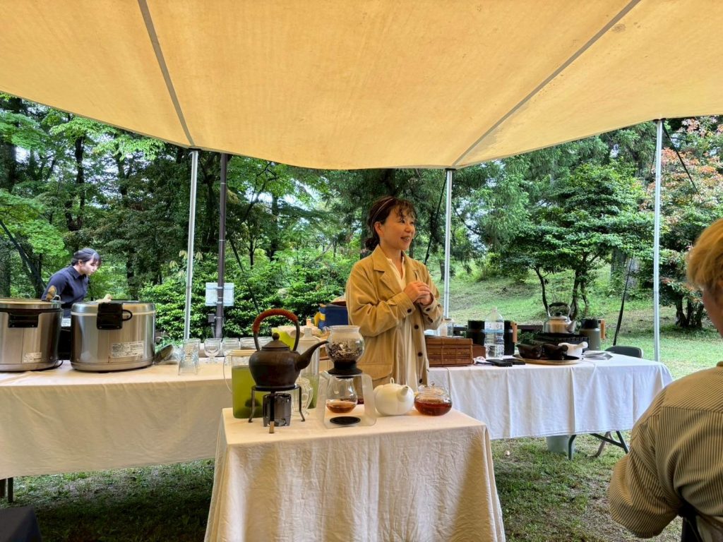 ↑天幕内では、雲仙の歴史がつまったハヤシライスをいただきつつ、日本茶インストラクターの松尾さんから素敵なお茶のふるまいが。