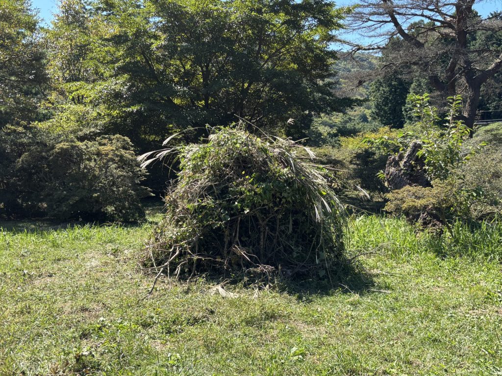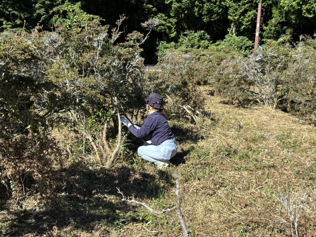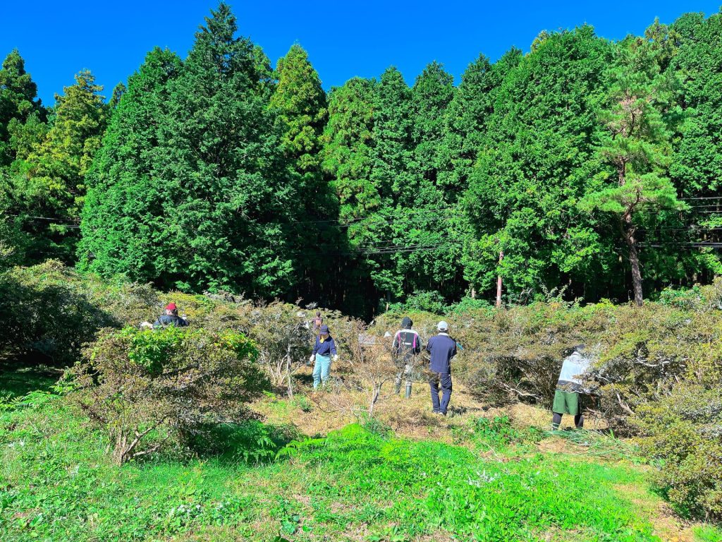 木の根元も機械では刈れないので、鎌などを使って除去していきます。これも根気と人手が必要で、とくに高齢の方は腰を痛めやすくきつい作業です。(中腰はツラいですよね~)