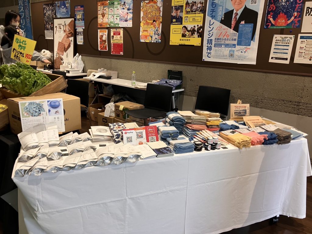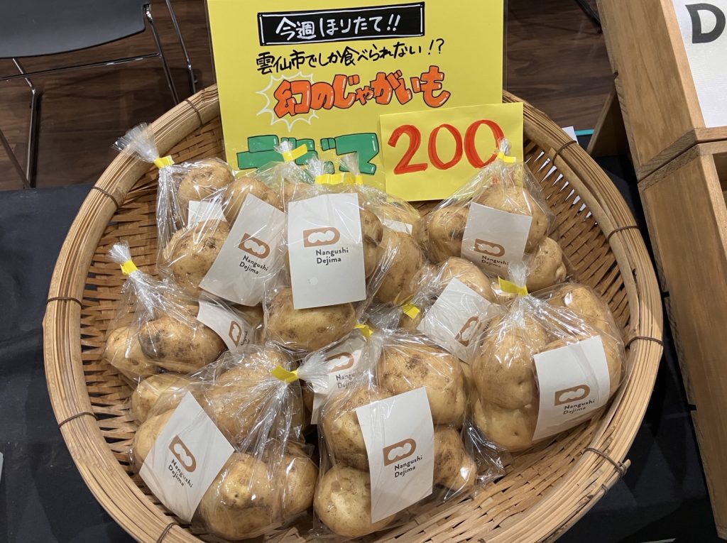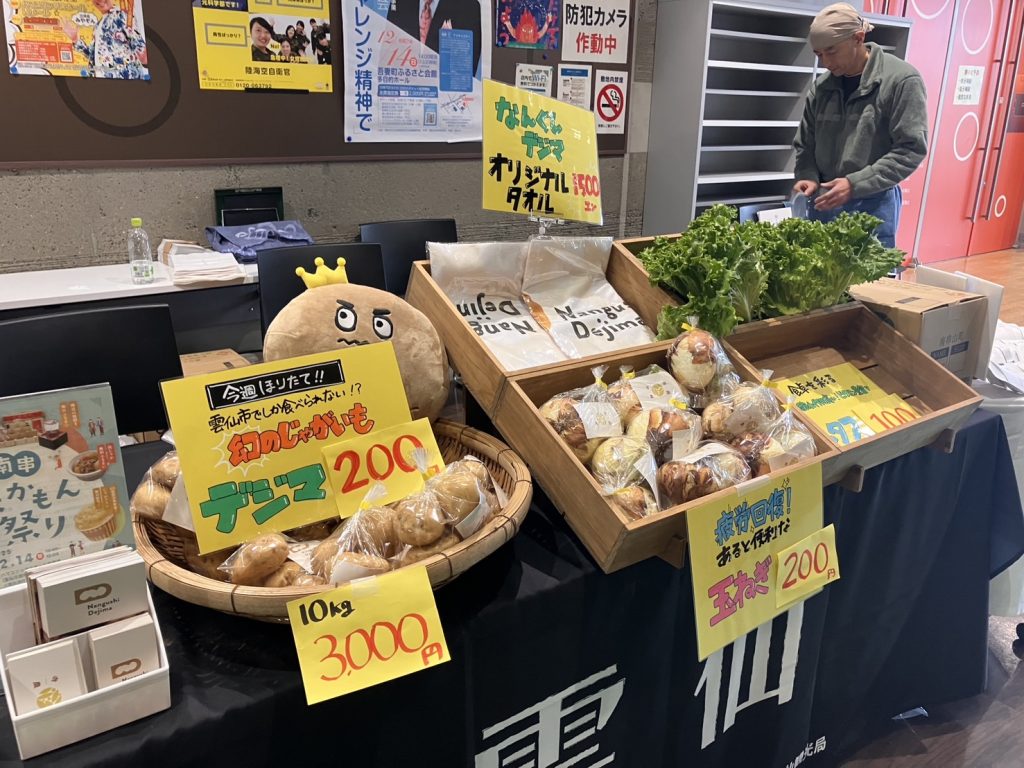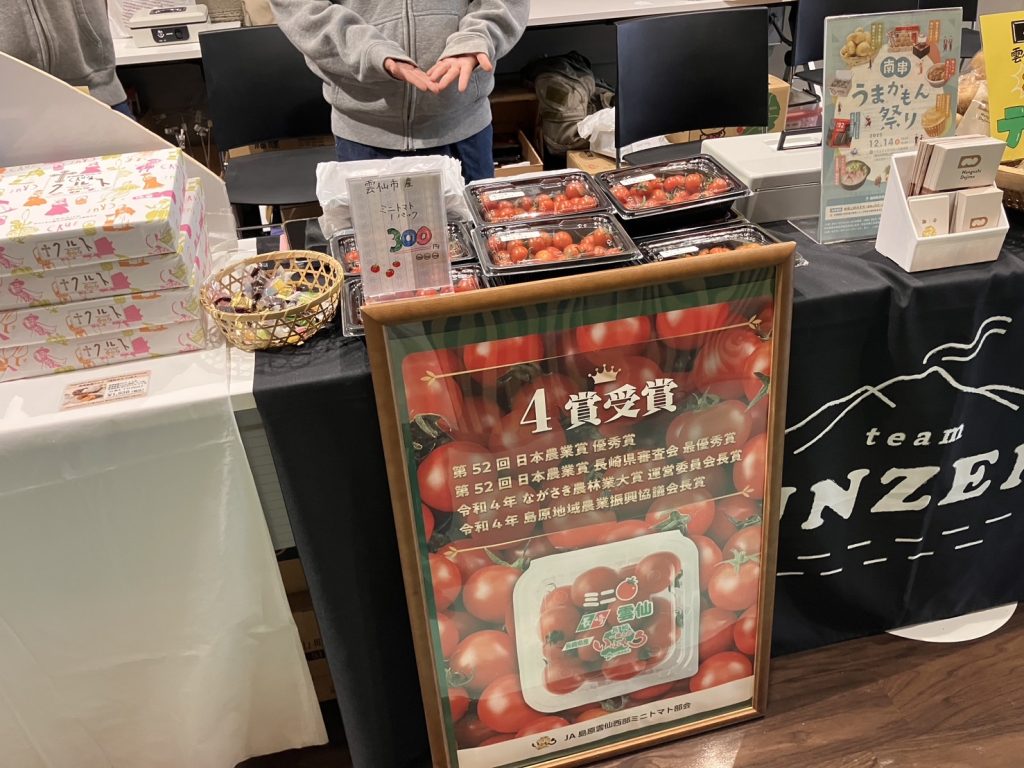 今年は、南串山町のデジマプロジェクトが作った幻のじゃがいも「デジマ」、小浜町のアイアカネ商店の藍の商品、千々石の農家さんが丹精込めて育てたミニトマトなど、多彩な雲仙市の逸品が並びました。生産者が自らブースに立ち、参加者と会話をしながら販売することができました。